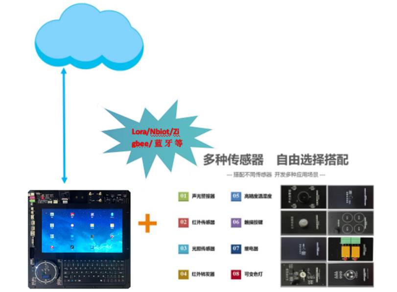 嵌入式邊緣物聯網實驗平臺主要由邊緣計算智能網關、AI攝像頭、AI麥克風陣列、zigbee節(jié)點、藍牙節(jié)點和Nbiot節(jié)點、lorawan節(jié)點等多種無線傳感器節(jié)點構成。通過多種傳感器的自由選擇搭配,可以完成智慧城市、智能家居,智慧校園,智能安防、物聯網傳感技術、物聯網通信技術、為搭建4G/5G綜合應用場景提供支持。