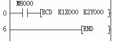 (4)例程說明:將M0~M4的數(shù)據(jù)送到輸出端Y0~Y4。