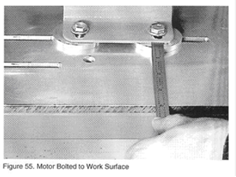 A. 用裝配螺釘,螺母和墊圈將電機安裝到工作表面,如圖55所示,用手工擰緊。
