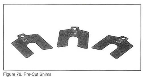 H.在電機的兩只腳下插入相應厚度的調整墊片(按步驟F中所計算出的墊片厚度),前兩只或者后兩只都可以,這樣可以使得軸上的水平儀氣泡處于中心位置。采用如圖59所示調整墊片,它們放在儲物柜的抽屜1中。