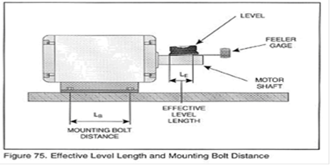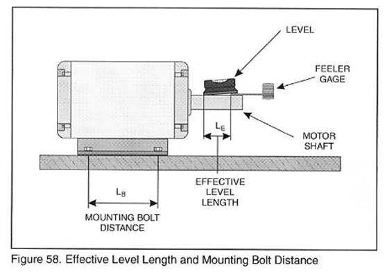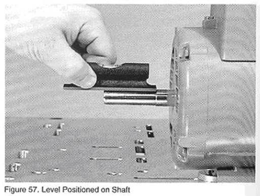 A.將水平儀放置在電機軸上,如圖57所示,觀察氣泡的位置。務必使得水平儀放置在軸的光滑表面上,一些軸是階梯軸,所以水平儀必須放置在其中一段上面,如圖57所示。