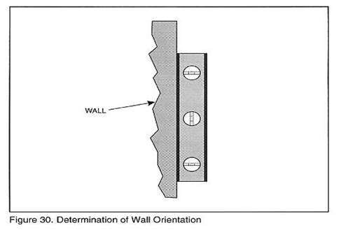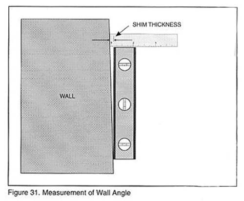行測量如圖31所示。直到水平尺氣泡處于刻度中心。記錄組合塞(尺)片的厚度。假如墻的傾斜度過大,可以直接用尺子代替塞尺。