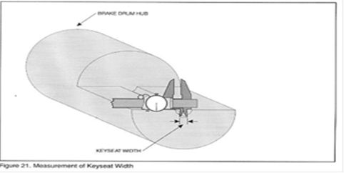 3. 執行下列步驟測量圓柱形制動器輪轂上鍵槽的寬度,深度和長度