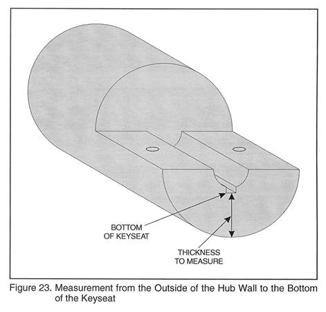 C. 用游標卡尺測量從輪轂的外壁到鍵槽底部的厚度,如圖23所示