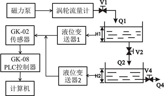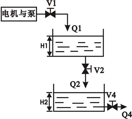設上水箱的進水量為Q1,水箱的液面高度為H1,下水箱的進水量為Q2,出水量為Q4,水箱的液面高度為H2。