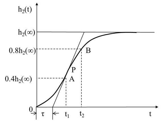 過曲線的拐點做一條切線,它與橫軸交于一點,該點與原點的距離即為滯后時間常數τ。