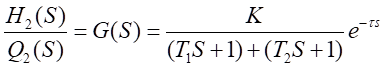 根據物料動態平衡關系,并考慮到液體傳輸過程中的時延,其傳遞函數為: