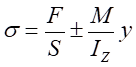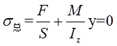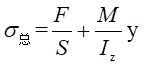 其中,F表示軸力,S表示橫截面面積,M=0.22F表示橫截面上的彎矩,