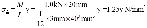 (3)距離中心軸距離為y處總應力為: