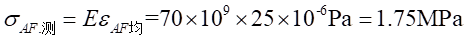 載荷F作用在試件(見圖7-1)的對稱軸線上時,A-A截面有軸力,有彎矩,由于對稱條件沒有剪力。方框試件的彈性模量為70GN/m2。軸力引起的正應力為:
