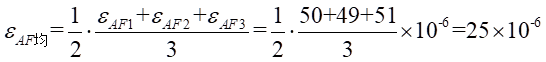 (2)由實驗數據可知,A-A截面上內圈處由彎曲引起的平均應變為: