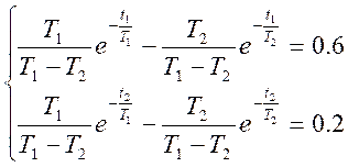 根據(jù)上式,就可以利用階躍響應(yīng)上兩個點(diǎn)的數(shù)據(jù)確定參數(shù)。例如,可以取分別等于0.4和0.8,從曲線上定出。如圖2.1.10所示。
