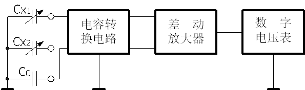 1、實驗電路框圖如圖7-1所示。電容的變化通過電容轉換電路轉換成電壓信號,經過差動放大器放大后,用數字電壓表顯示出來。