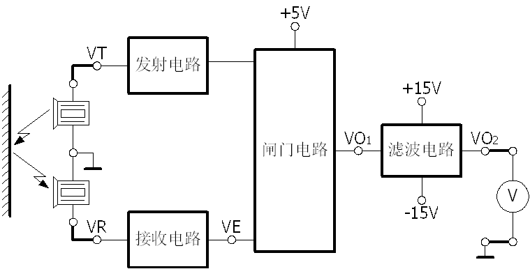 圖41-1 超聲波傳感器實(shí)驗(yàn)原理圖