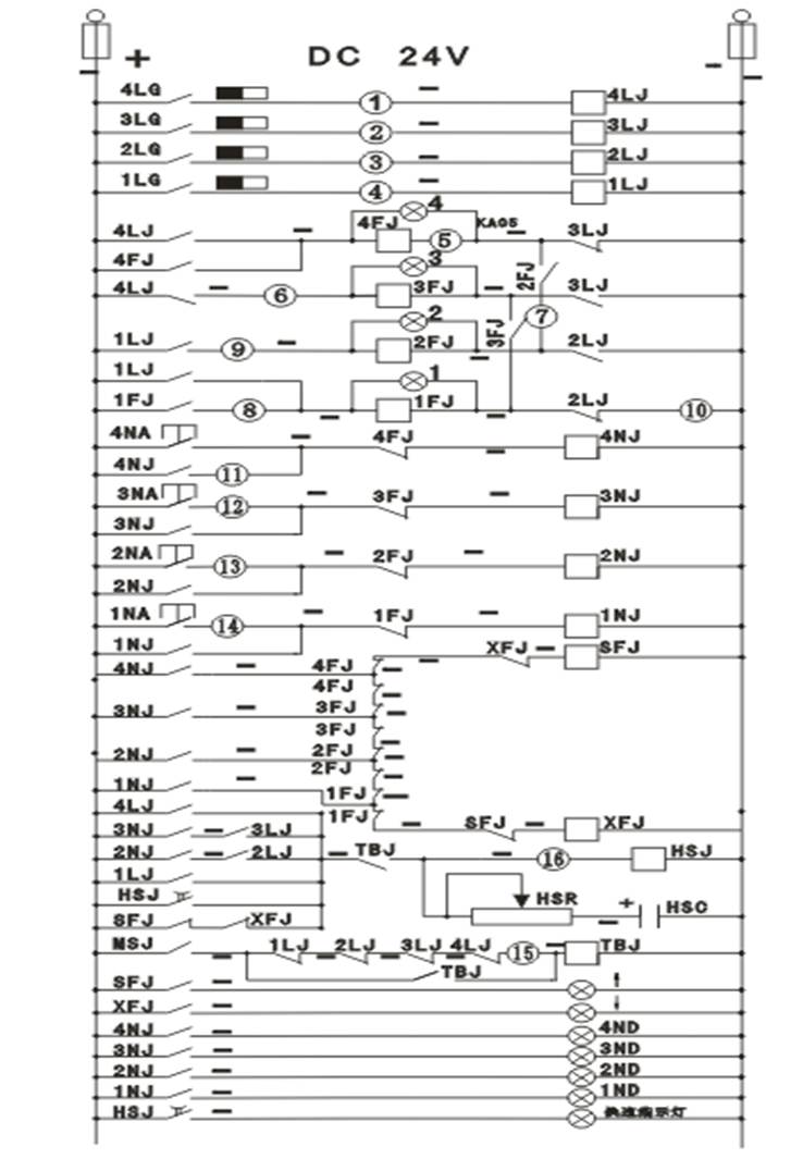 故障點1啟動時,故障現象:第4層的樓層繼電器不動作;