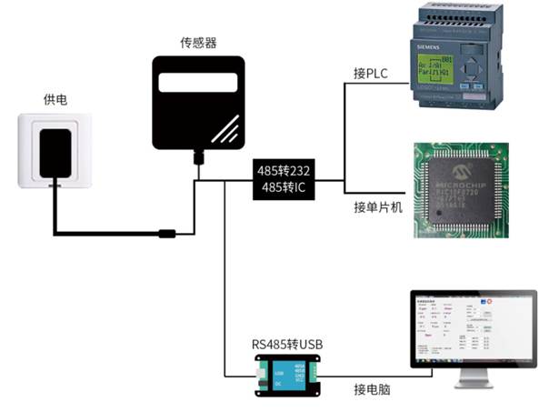 本教材選用的是工業級二氧化碳傳感器,廣泛適用于農業大棚,花卉培養等需要二氧化碳及溫濕度監測的場合。傳感器內輸入電源,感應探頭,信號輸出三部分完全隔離。安全可靠,外觀美觀,安裝方便。設備采用高靈敏度的氣體檢測探頭,信號穩定,精度高。具有測量范圍寬、線形度好、使用方便、便于安裝、傳輸距離遠等特點。