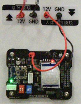 圖5-10  人體紅外模塊實物圖               圖5-11  人體紅外模塊實物接線圖