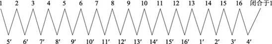 ④ 畫繞組展開圖。 ⑤ 畫磁極和電刷。 ⑥ 確定元件感應電動勢方向、電刷的極性、電樞旋轉方向。 (2)并聯支路 (3)均壓線 3)單波繞組 (1)單波繞組的特點 (2)并聯支路 4)其他繞組及其應用 |