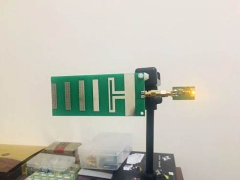 圖6垂直極化天線發射接收為黃色和紅色LED燈