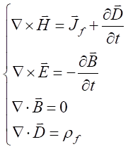 在理想介質中,既沒有電荷,也沒有電流,所以理想介質中的電磁場滿足無源的麥克斯韋方程組。無源無耗媒質中電磁場滿足麥克斯韋方程: