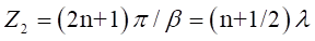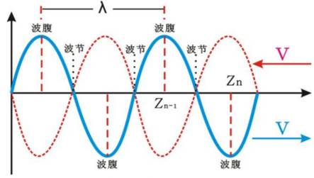 (n=0,1,2......) 時,合成波的振幅最大,Z1的位置為合成波的波腹;相位差則當;(n= 0,1,2......) 時,合成波的振幅最小,Z2的位置為合成波的波節。