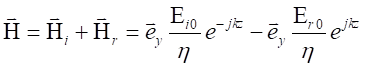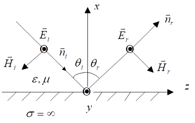 電磁波不能進入理想導體,所以在理想導電平面上,入射的電磁波必然會被反射。反射波與入射波在相反的方向上傳播,設反射波的電場強度為反射波的磁場強度為 ,在中z≤0的空間中的電磁波是入射波和反射波的迭加,總的電場強度為