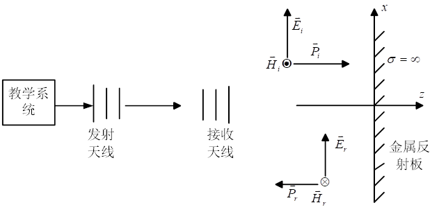 圖2實驗系統波長測量原理圖和電磁波垂直入射模型