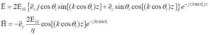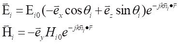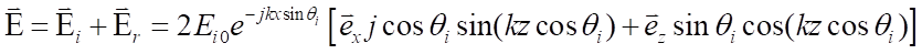 取坐標系如圖。能與上面類似的處理,可得此時媒質1中的合成波的電磁場表示式為