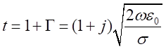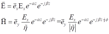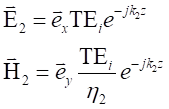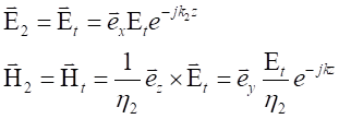 在第二種媒質中,只有向正Z軸方向傳播的透射波,它的電場強度和磁場強度可表示為: