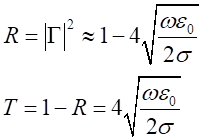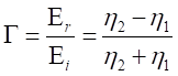 定義:分界面上反射波電場強度和入射波電場強度之比為反射系數,用G表示,則在兩種理想介質的平面分界面上,反射系數為
