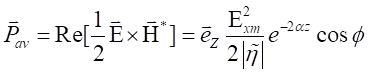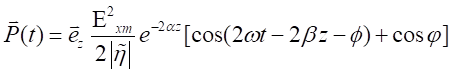 有耗媒質中,坡印延矢量中有一部隨時間以2倍于電磁波頻率的頻率來回振蕩的成份。坡印廷矢量的時間平均值為: