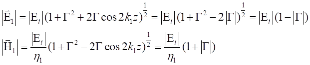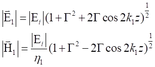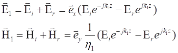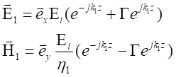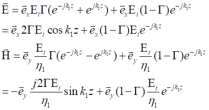 第一種媒質中的合成波應是入射波和反射波的迭加,所以其中總的電場強度和磁場強度為: