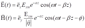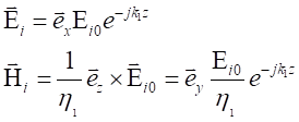 假設入射波是線極化的均勻平面電磁波,其電場強度和磁場強度為
