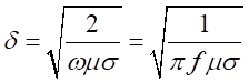 電磁波進入導體的距離為幾個穿透深度時,振幅即接近于零,故良導體中的電磁場以及傳導電流于實際上只存在于導體表面處極薄的一層之中。這種電磁場及電流集中于導體表面附近的現象,稱為趨膚效應。由于d很小,故在頻率很高時,對一切具有實際意義的厚度的導體,電磁波是不能透過的。良導體的得透射系數為