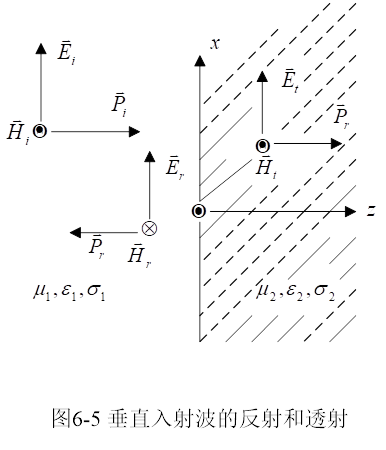 將研究平面波在幾種不同媒質中的傳播,但只考慮分界面為無限大平面的特殊情況。實驗表明,當電磁波由一種媒質射向另一種媒質的界面時,將發生反射和折射(透射)現象,入射波的一部分能量由界面反射回媒質1,而另一部分能量透入媒質2。于是媒質1中除了入射波外還會有一個反射波,入射波和反射波迭加成為媒質1中的合成波。同時,媒質2中將有反射波、透射波和入射波同時存在時,才能使邊界條件得到滿足。研究存在不同媒質時的電磁波傳播,就是要找出滿足給定媒質分界面上邊界條件的電磁場分布,因而屬于電磁場邊值問題,而邊界條件則是處理這類問題的基礎。