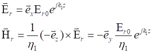 分別是第一種媒質中均勻平面電磁波的相位常數和波阻抗。由于反射波仍在第一種媒質中,但沿負Z軸方向傳播,所以反射波可以表示為