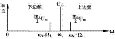 調(diào)幅的過程就是在頻譜上將低頻調(diào)制信號(hào)搬移到高頻載波分量?jī)蓚?cè)的過程。在單頻調(diào)制時(shí),其調(diào)幅波的頻帶寬度為調(diào)制信號(hào)頻譜的兩倍,即
