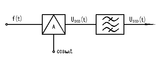 通過邊帶濾波器后,就可得到上邊帶或下邊帶即: