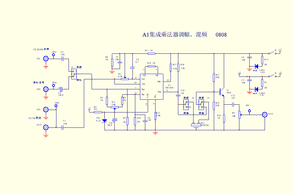 2. 掌握集成乘法器混頻電路的工作原理和調試方法