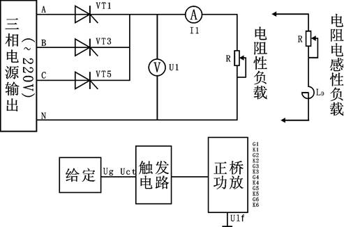 (2) 熟悉三相半波可控整流電路在電阻負載和電阻電感性負載時的工作情況。