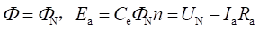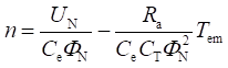 當電動機的電樞工作電壓和勵磁磁通均為額定值,電樞回路不串電阻(即,)時的機械特性稱為固有機械特性。其表達式為: