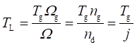 j ——傳動機構的總轉速比,,其中j1,j2分別為第一、第二級轉速比。也就是說,總的轉速比應該是各級轉速比之積。通常傳動機構是減速的,即ngnd,故;若傳動機構是增速的,則ngnd。