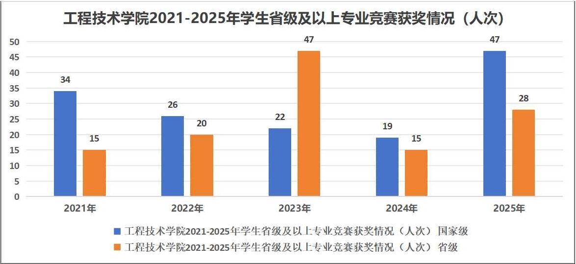 圖為工程技術學院2021-2025學年學生省級及以上專業(yè)競賽獲獎情況 工程技術學院 提供